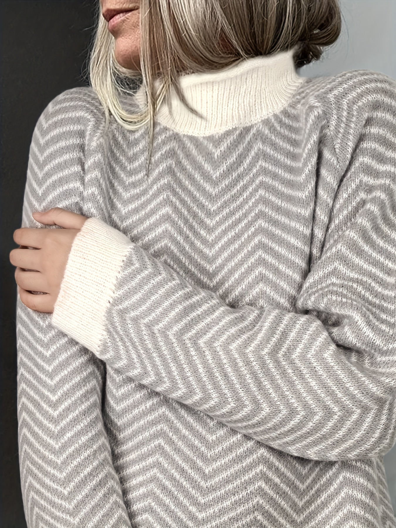 Synne-tröjan kombinerar en varm komfort med ett delikat och modernt uttryck. Den fina sicksack-strukturen och de kontrasterande muddarna ger en exklusiv känsla, medan den avslappnade passformen gör tröjan perfekt för både vardagsbruk och lugna helger. Ett mjukt och lätt plagg som känns behagligt mot huden – och som håller dig varm utan att kännas tung.